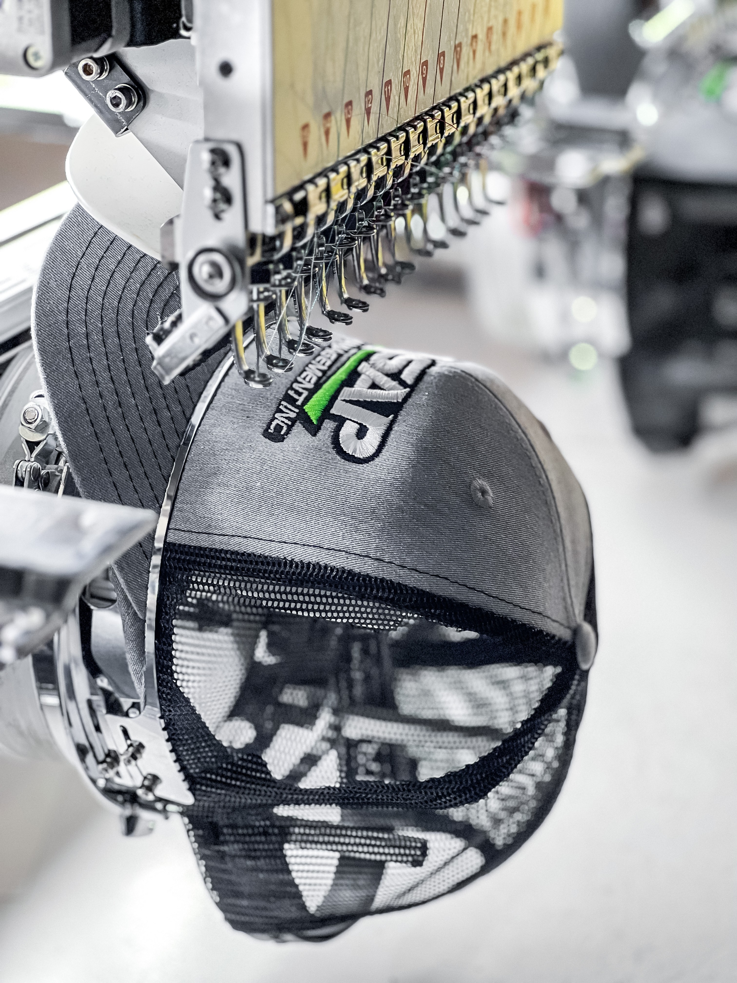 Our embroidery is crafted with precision and durability, all produced in-house to ensure consistent quality and attention to detail on every piece.
